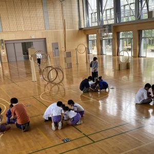 5月29日(木)、堀岡小学校の5年生18名を対象に、ドローンプログラミング教室を開催しました。今回は、大学から3年ゼミ生4名と4年生の先輩2名が参加しました。