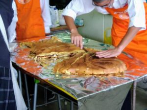 高岡向陵高校の学園祭「桜樹祭」にて、高校生がミルフィーユ方式で焼き上げました。