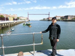 「ビスカヤ橋」 ビルバオから20分ほど電車で行ったネルビオン川に架かる世界最古の運搬橋。吊り下げられたゴンドラで人だけでなく車も対岸に運搬します。いまでも交通手段として普通に使われてるのが興味深いところ。ピタゴラスイッチでも紹介されたらしい。