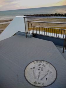 実験を終えて、日本海に沈む夕日を眺めて、ソフトクリー